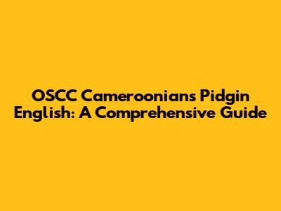 OSCC Cameroonians Pidgin English: A Comprehensive Guide