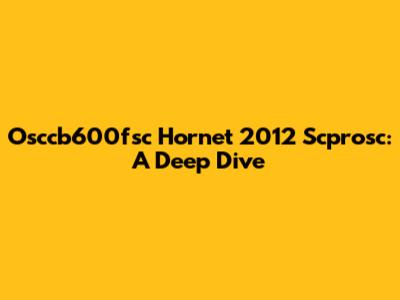 Osccb600fsc Hornet 2012 Scprosc: A Deep Dive