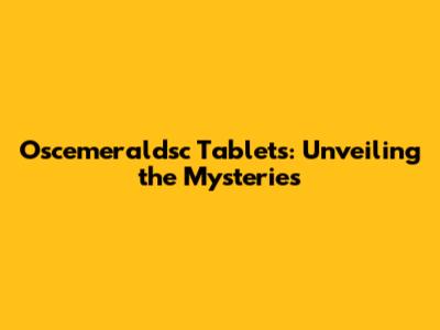 Oscemeraldsc Tablets: Unveiling The Mysteries