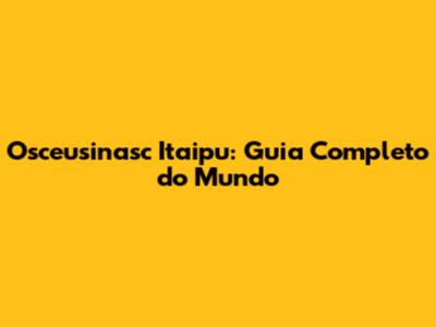 Osceusinasc Itaipu: Guia Completo Do Mundo