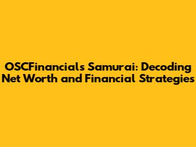 OSCFinancials Samurai: Unveiling Net Worth And Financial Insights
