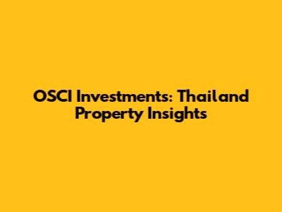 OSCI Investments: Thailand Property Insights