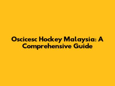 Oscicesc Hockey Malaysia: A Comprehensive Guide