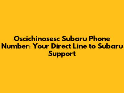 Oscichinosesc Subaru Phone Number: Get In Touch