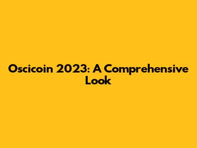 Oscicoin 2023: A Comprehensive Look