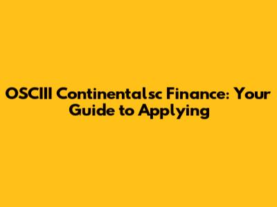 OSCIII Continentalsc Finance: Your Guide To Applying