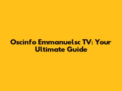 Oscinfo Emmanuelsc TV: Your Ultimate Guide