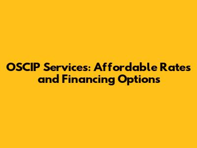 OSCIP Services: Affordable Rates And Financing Options