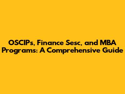 OSCIPs, Finance Sesc, And MBA Programs: A Comprehensive Guide