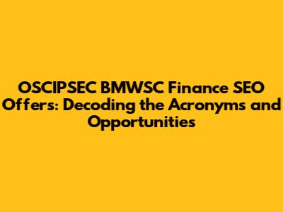 Hey guys! Ever stumbled upon a bunch of acronyms and felt like you're trying to decipher an ancient code? Well, today we're diving into the world of OSCIPSEC, BMWSC, Finance, and SEO Offers. Buckle up, because it's going to be an insightful ride! We'll break down each term, explore their significance, and uncover the opportunities they present. Let's get started!