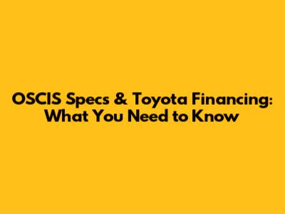 OSCIS Specs & Toyota Financing: What You Need To Know