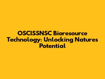 OSCISSNSC Bioresource Tech: Unlocking Nature's Potential