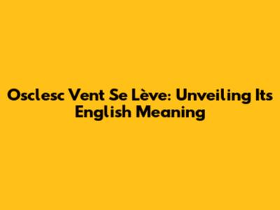 Osclesc Vent Se Lève: Unveiling Its English Meaning