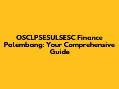 Hey guys, let's dive into everything you need to know about OSCLPSESULSESC Finance in Palembang. Whether you're a student, a business owner, or just someone trying to navigate the financial landscape of this vibrant Indonesian city, this guide is designed just for you. We'll break down what OSCLPSESULSESC Finance is, its significance in Palembang, and how you can make the most of it.