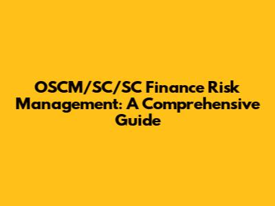 OSCM/SC/SC Finance Risk Management: A Comprehensive Guide
