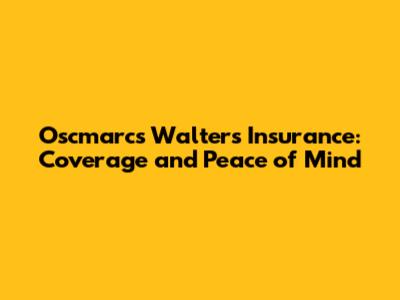 Oscmarcs Walters Insurance: Coverage And Peace Of Mind