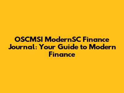 OSCMSI ModernSC Finance Journal: Your Guide To Modern Finance