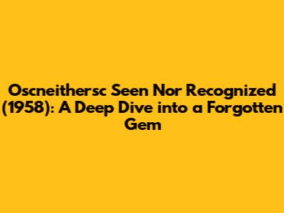 Hey guys, have you ever stumbled upon a movie title that just sounds so intriguing, so mysterious, that you just have to know what it's about? Well, today, we're diving deep into one such flick: Oscneithersc Seen Nor Recognized from 1958. Yeah, I know, the title itself is a bit of a mouthful, and honestly, it doesn't exactly roll off the tongue like "Casablanca" or "The Godfather." But trust me, this 1958 film, while perhaps not a household name for many, offers a unique cinematic experience that's worth exploring. For those of you hunting for the Oscneithersc Seen Nor Recognized 1958 full movie, you're in the right place. We're going to unpack its plot, its potential themes, and why films like this, even if they fly under the radar, are so important to cinema history. Think of this as your ultimate guide to understanding and appreciating this particular piece of filmmaking history. It’s a journey into a time when storytelling in cinema was taking different, sometimes peculiar, paths, and Oscneithersc Seen Nor Recognized is a fantastic example of that exploration. We'll be looking at what made this movie tick in 1958 and what, if anything, still resonates with audiences today. So grab your popcorn, get comfy, and let's unravel the enigma that is Oscneithersc Seen Nor Recognized.