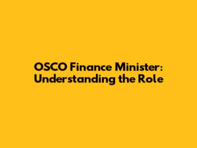 OSCO Finance Minister: Key Role & Impact Explained
