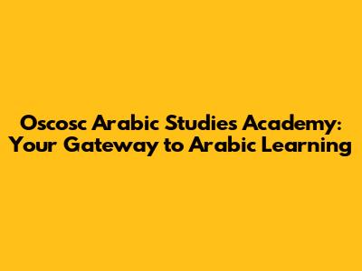 Oscosc Arabic Studies Academy: Your Gateway To Arabic Learning