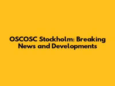 OSCOSC Stockholm: Latest News And Updates