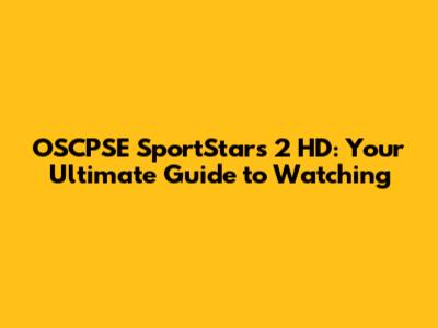 OSCPSE SportStars 2 HD: Your Guide To Watching