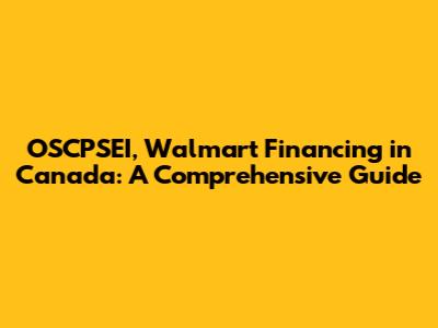 OSCPSEI, Walmart Financing In Canada: A Comprehensive Guide