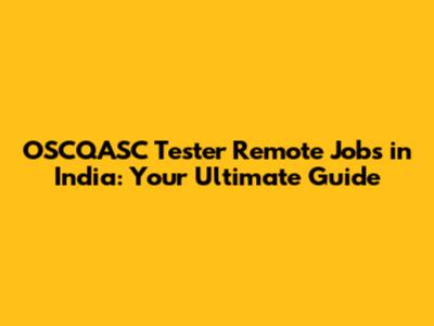 OSCQASC Tester Remote Jobs In India: Your Guide