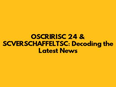 OSCRIRISC 24 & SCVERSCHAFFELTSC: Latest News & Updates