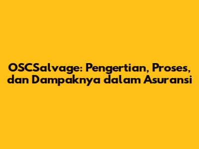 OSCSalvage, atau dikenal juga sebagai sisa-sisa objek yang diasuransikan, adalah sisa-sisa atau bagian dari properti yang diasuransikan yang masih memiliki nilai ekonomis setelah mengalami kerusakan atau kerugian yang diasuransikan. Dalam skenario klaim asuransi, ketika suatu objek, misalnya mobil atau rumah, mengalami kerusakan akibat peristiwa yang dijamin oleh polis asuransi (seperti kecelakaan atau kebakaran), perusahaan asuransi mungkin membayar klaim untuk kerugian tersebut. Namun, bukan berarti semua bagian dari objek yang rusak tersebut menjadi tidak berharga. Nah, bagian-bagian yang masih bisa dimanfaatkan atau memiliki nilai jual inilah yang disebut OSCSalvage. Gampangnya, OSCSalvage adalah sisa-sisa yang masih bisa dijual atau digunakan kembali.