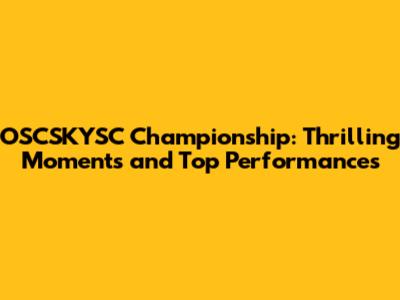 OSCSKYSC Championship: Thrilling Moments And Top Performances