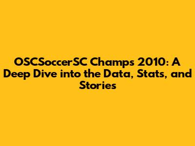 OSCSoccerSC Champs 2010: Data, Stats, And Stories
