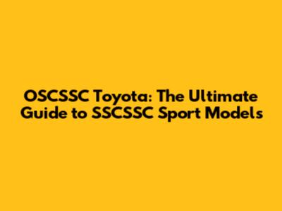 OSCSSC Toyota: The Ultimate Guide To SSCSSC Sport Models