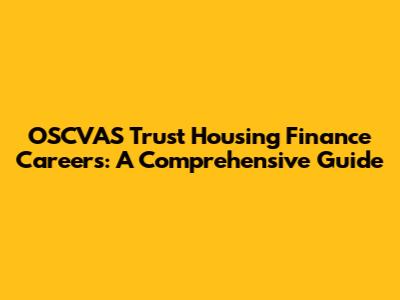 OSCVAS Trust Housing Finance Careers: A Comprehensive Guide