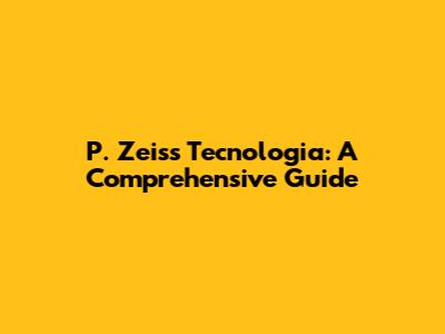 P. Zeiss Tecnologia: A Comprehensive Guide