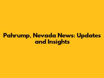 Pahrump, Nevada News: Updates And Insights