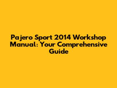 Pajero Sport 2014: Your Go-To Workshop Manual Guide