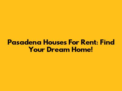 Pasadena Houses For Rent: Find Your Dream Home!