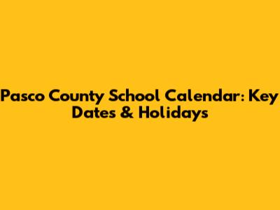 Pasco County School Calendar: Key Dates & Holidays