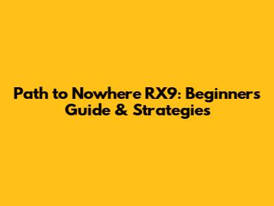 Path To Nowhere RX9: Beginner's Guide & Strategies