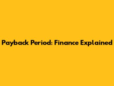 Payback Period: Finance Explained