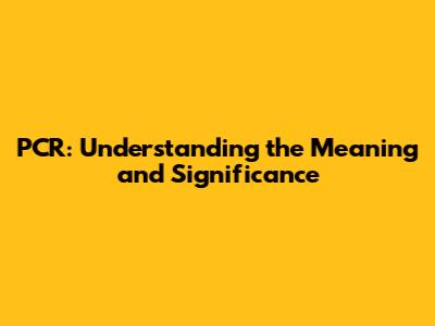 PCR: Understanding The Meaning And Significance