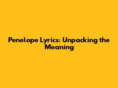 Penelope Lyrics: Unpacking The Meaning