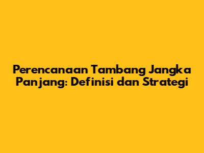 Perencanaan Tambang Jangka Panjang: Definisi Dan Strategi