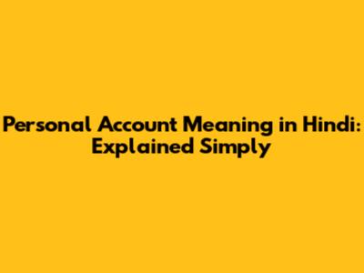 Personal Account Meaning In Hindi: Explained Simply