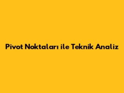 Pivot Noktaları Ile Teknik Analiz