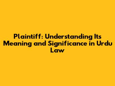 Plaintiff: Meaning And Significance In Urdu Law