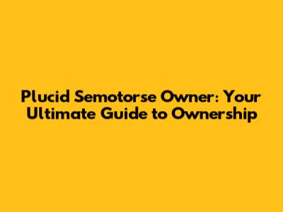 Plucid Semotorse Owner: A Comprehensive Guide