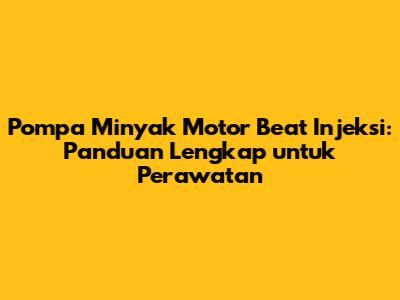 Pompa Minyak Motor Beat Injeksi: Panduan Lengkap Untuk Perawatan