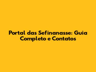 Portal Das Sefinanasse: Guia Completo E Contatos